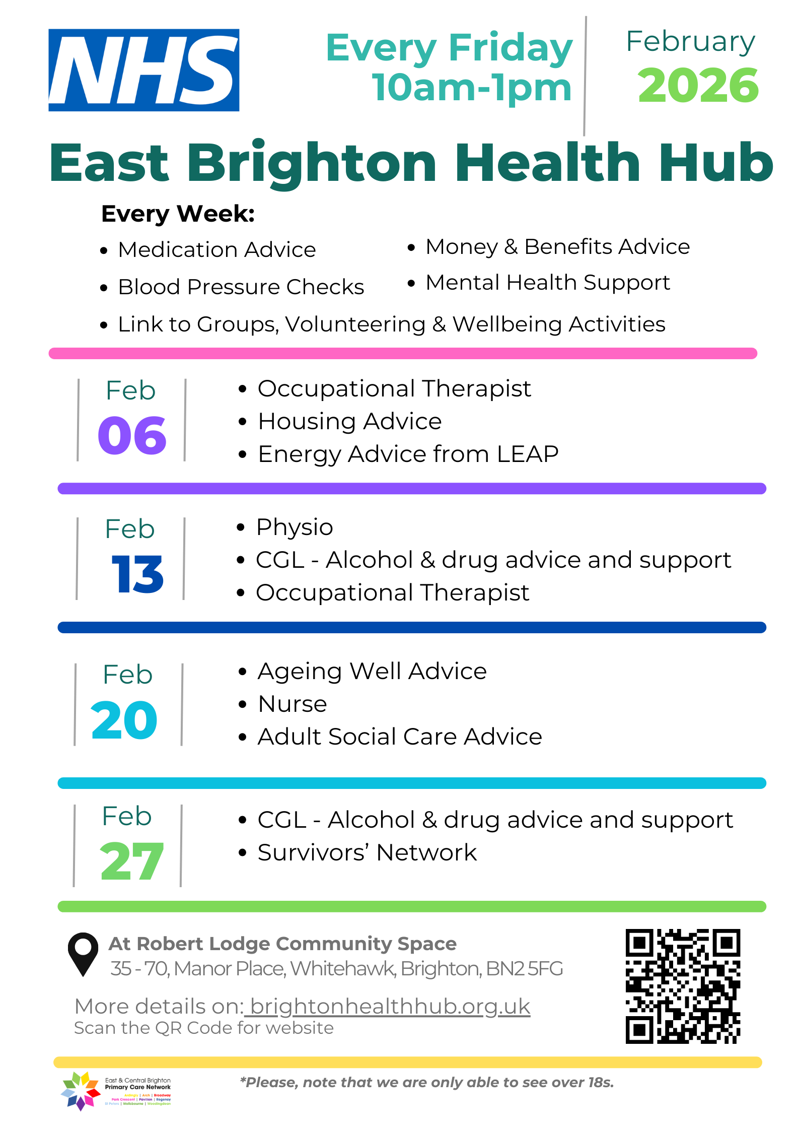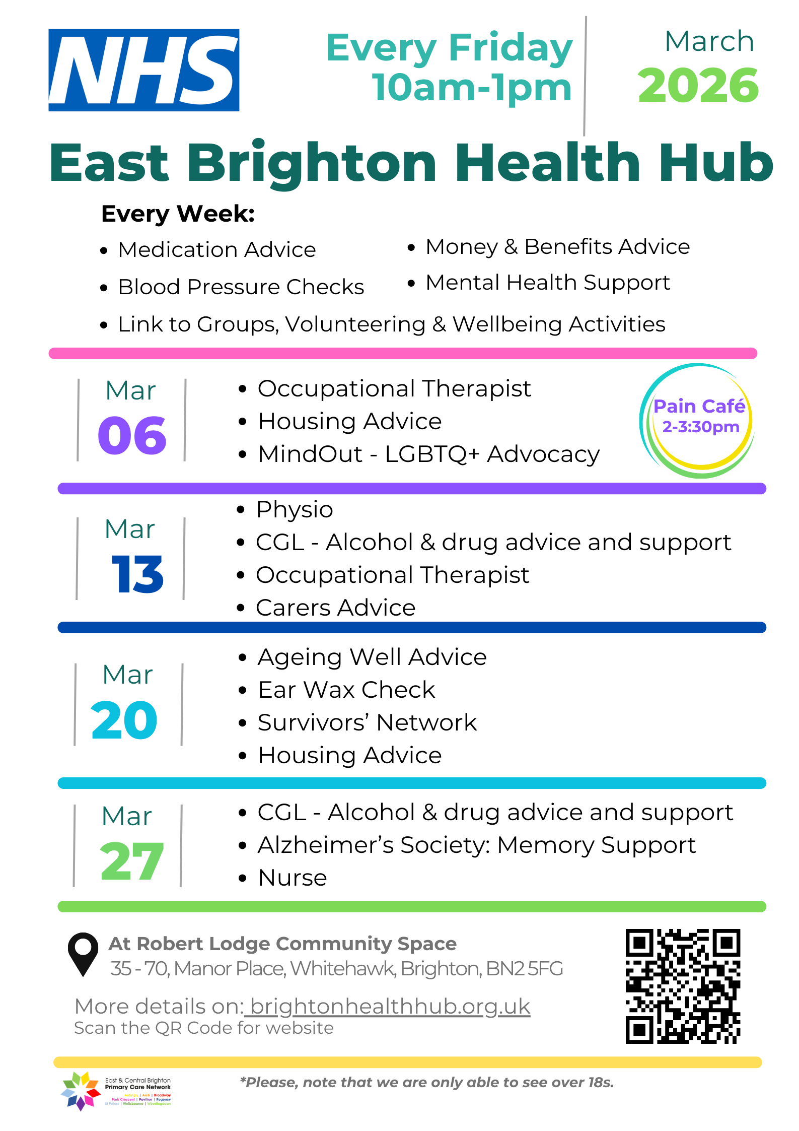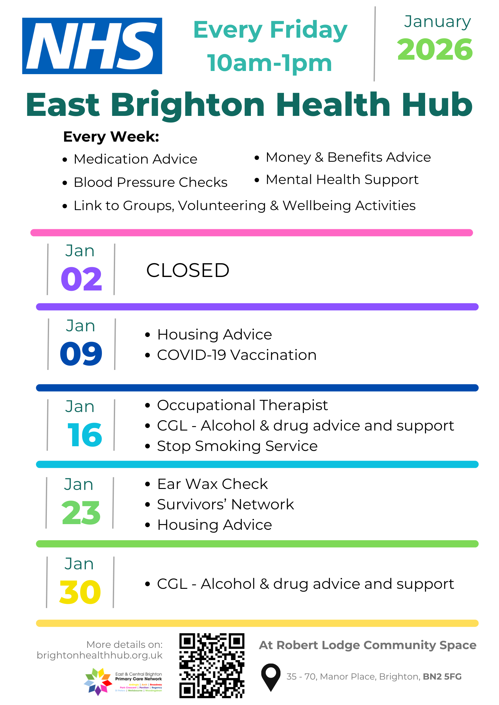 The East Brighton Health Hub is for people over the age of 18 living in east and central Brighton.